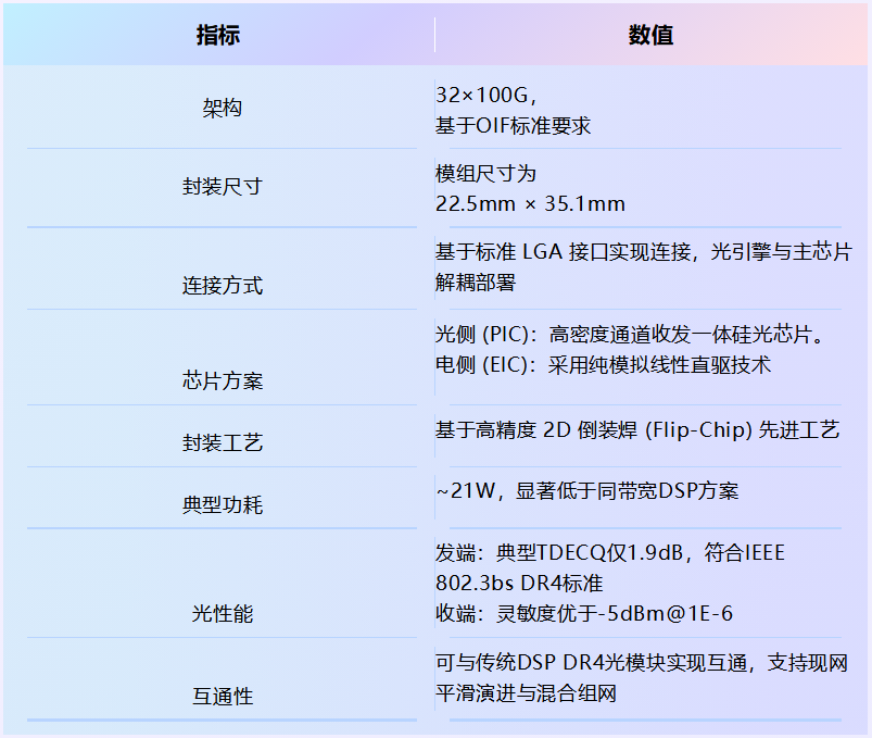 采用 32×200G 架构,面向下一代更高带宽密度光互连场景,体现光迅科技在硅光NPO技术路线上的持续演进与产品布局能力。