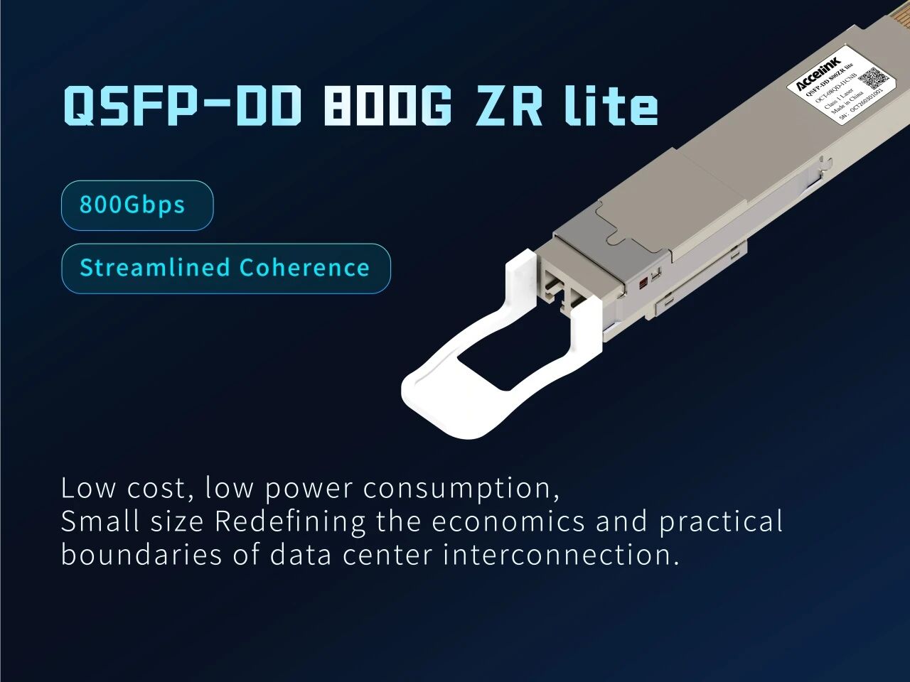 在AI智算中心设备高密度部署趋势下,QSFP-DD封装的800G ZR Lite光模块小体积优势尽显。它能在有限机架空间增加端口配置,提升空间利用率,为Scale Across互联紧凑布局提供有力支持,进一步降低整体运营成本。